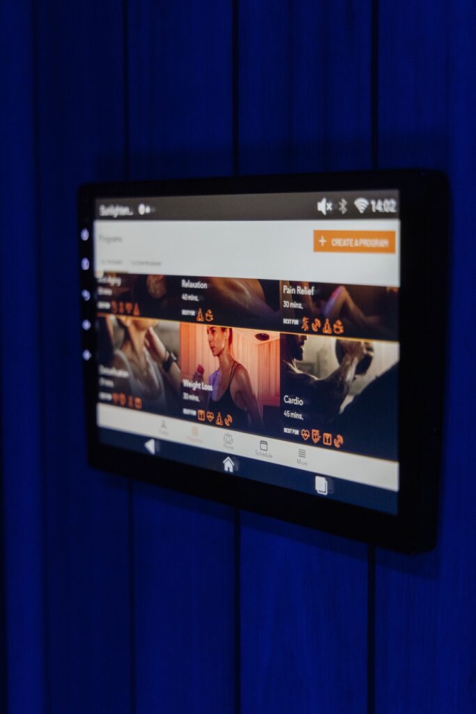Once you’re ready, you’ll step into the infrared sauna and relax as gentle heat warms your body from within. Most sessions last around 30 to 45 minutes. During that time, the infrared energy encourages sweating, helps your muscles relax, and creates a deeply calming experience.
